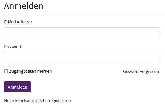 Sollten Sie noch kein Konto besitzen, können Sie sich über „Jetzt registrieren“ entsprechend erstmalig registrieren.