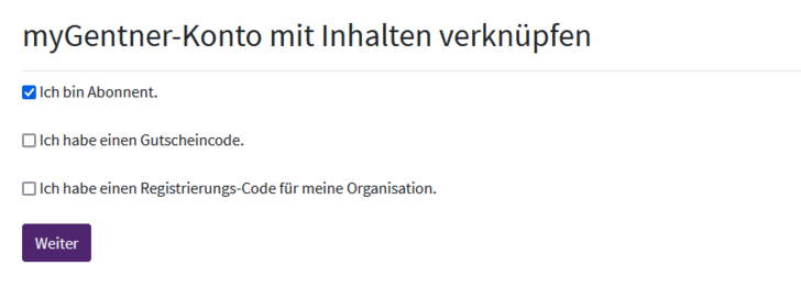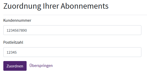 Innerhalb des Registrierungsprozess können Sie ein bestehendes Abo mit Ihrem Profil verknüpfen, um dem Profil entsprechende Abo-Rechte zu geben.