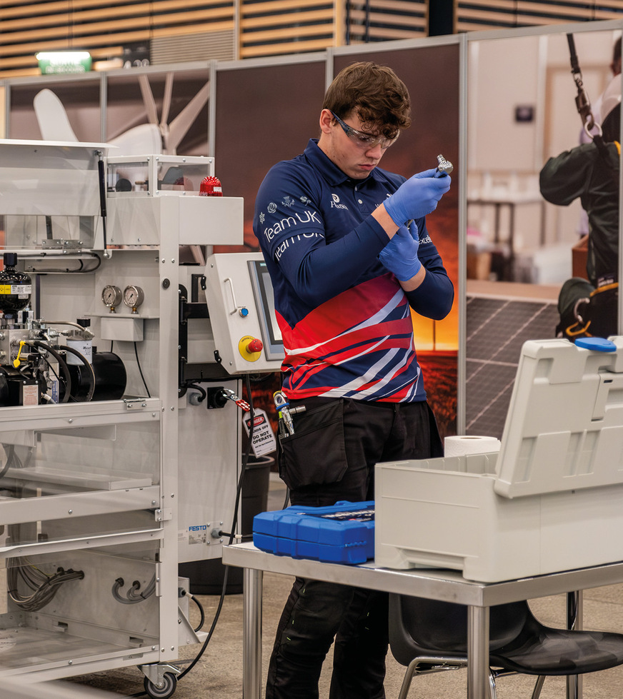 Chris Turnbull von WorldSkills UK unterstreicht die für Großbritannien wichtigsten Aspekte zur Teilnahme an den WorldSkills-Wettbewerben: „Die Wettbewerbe ermöglichen es, unsere Kompetenzen mit internationalen Best Practices zu vergleichen. Außerdem können wir Ausbildungsprogramme gestalten, die die höchsten Industriestandards widerspiegeln, und zukünftige Fachkräfte ausbilden, die für die Industrie bereit und weltweit wettbewerbsfähig sind.“ Gleichzeitig leistet Großbritannien einen Beitrag zum weltweiten Austausch über den Bereich der erneuerbaren Energien und die Weiterentwicklung von Arbeitskräften. „Mit unserem Engagement stellen wir sicher, dass die britischen Ausbildungsprogramme weiterhin auf die Bedürfnisse der Industrie abgestimmt sind und gleichzeitig eine zentrale Rolle bei der weltweiten Weiterentwicklung von Lösungen für erneuerbare Energien spielen“, so Turnbull.